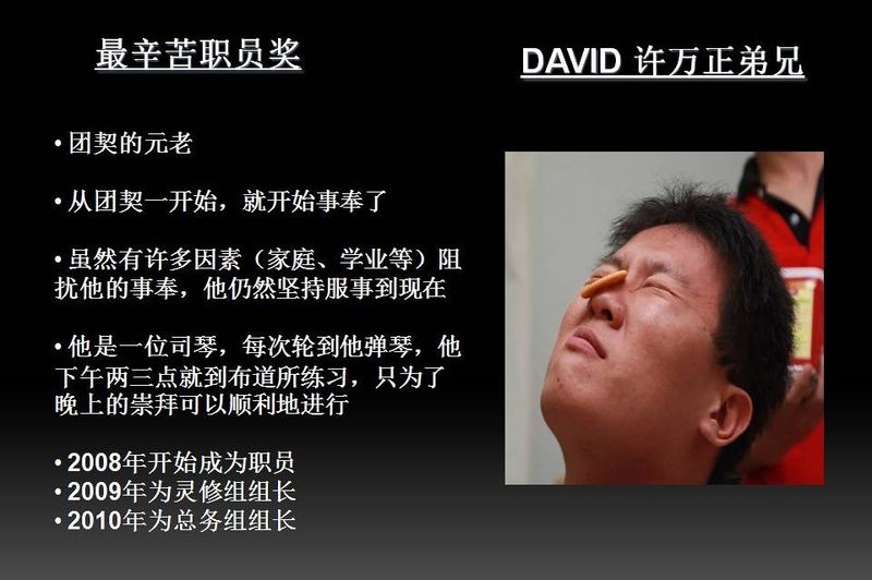 - 2.1 最辛苦职员奖 : DAVID 许万正弟兄