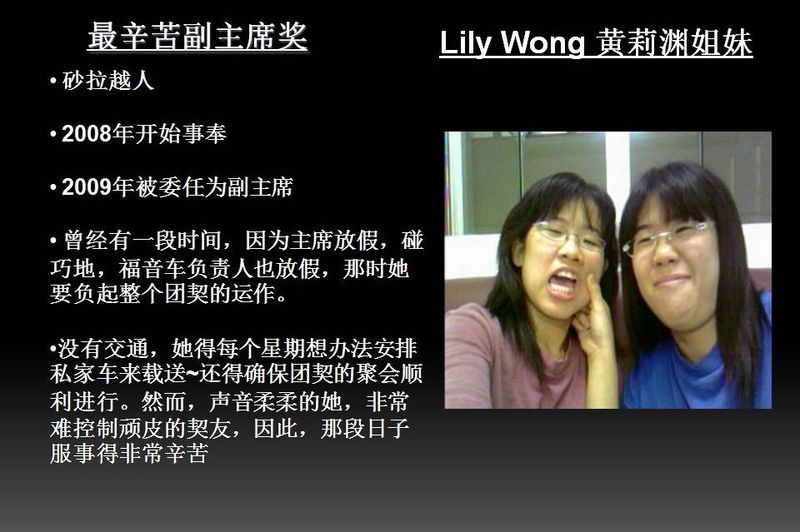 - 2.2 最辛苦副主席奖 : Lily Wong 黄莉渊姐妹