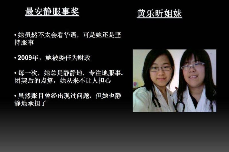- 2.3 最安静服事奖 : 黄乐昕姐妹