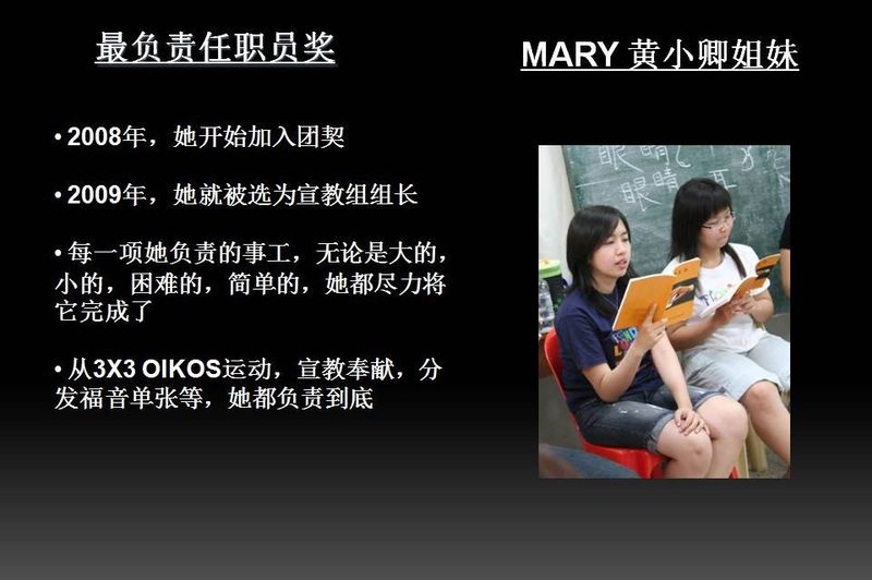 - 2.5 最负责任职员奖 : MARY 黄小卿姐妹