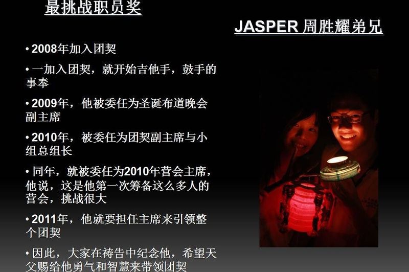 - 2.6 最挑战职员奖 : JASPER 周胜耀弟兄