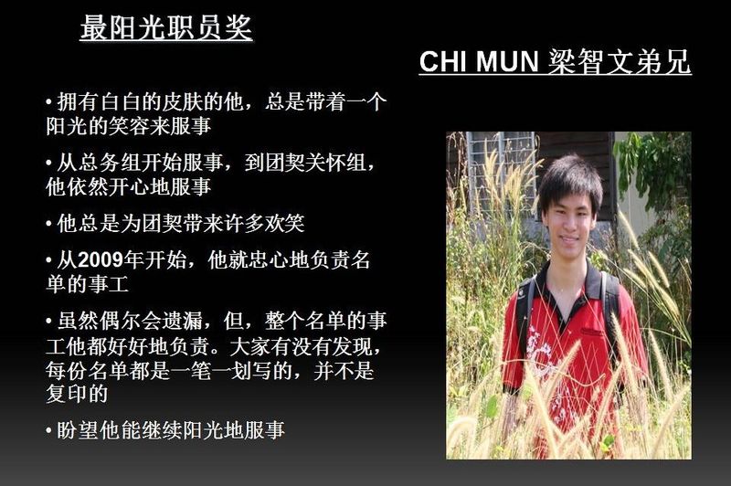 - 2.8 最阳光职员奖 : CHI MUN 梁智文弟兄