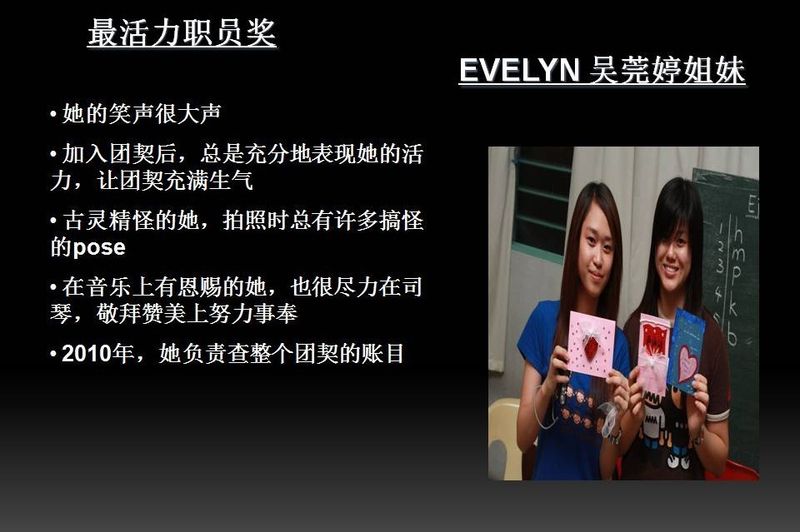 - 2.10 最活力职员奖 : EVELYN 吴莞婷姐妹
