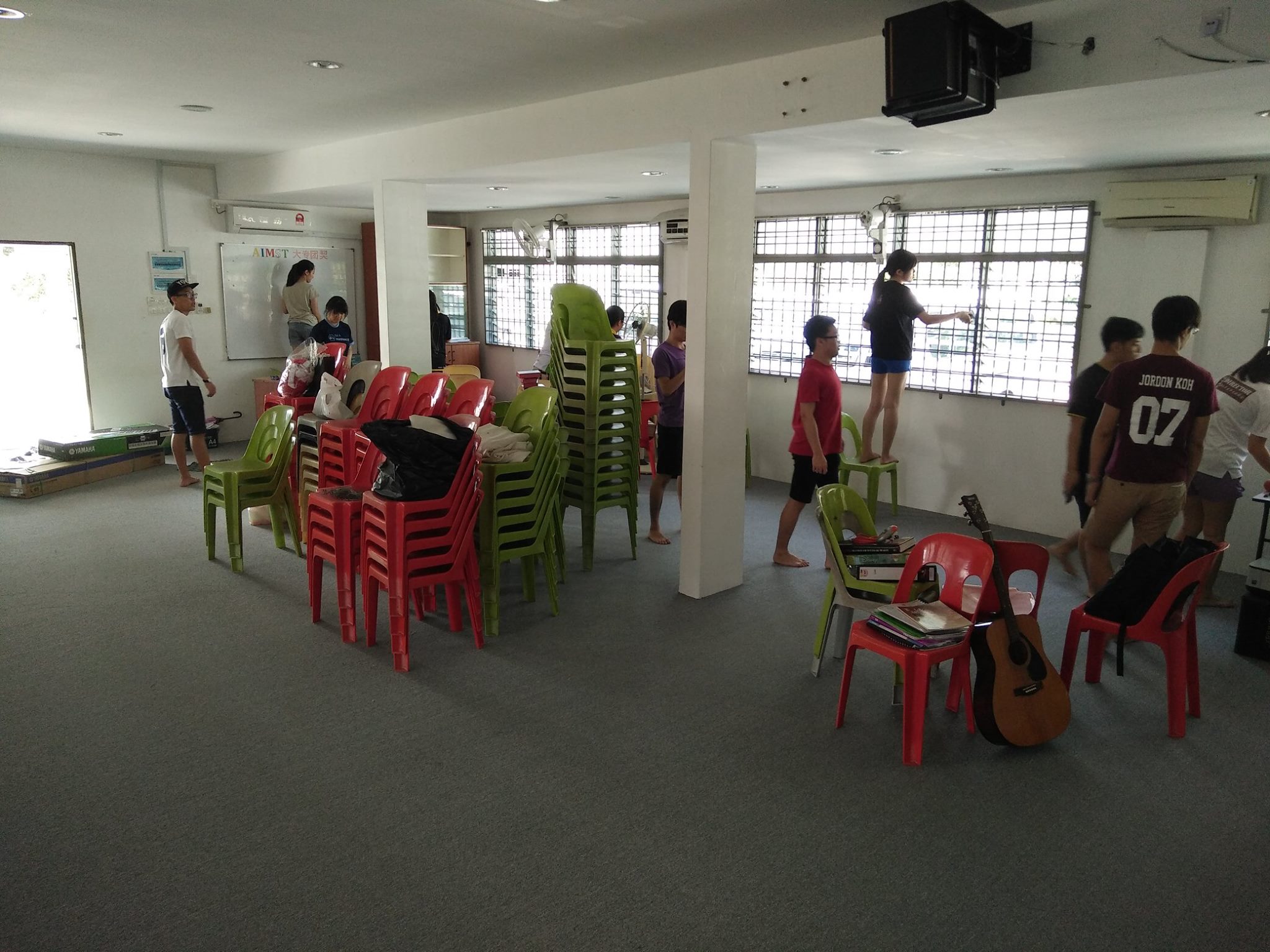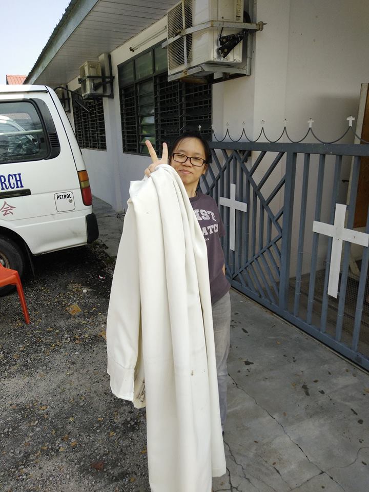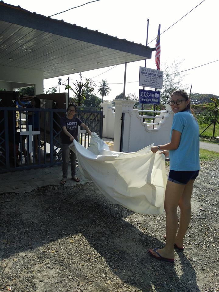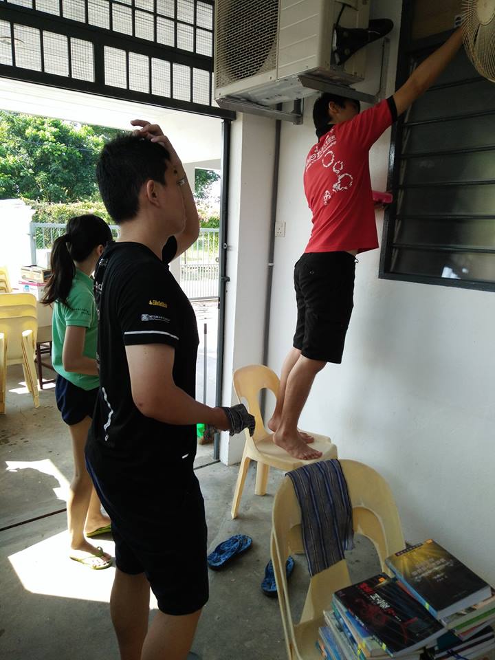 虽然在打扫的当儿,突然听到响声-发现在清理风扇的时候, 风扇的叶片掉了并其中一个断了,但感谢神的是这风扇很少被用到所以没很大的影响。 看到大家都同心合意的在打扫真的好有家人的感觉。打扫完了我们就开始享用由本地会友家福弟兄所准备的午餐。感谢家福弟兄为我们所预备热腾腾的肉骨茶, 让我们有机会吃到在AIMST吃不到的猪肉!