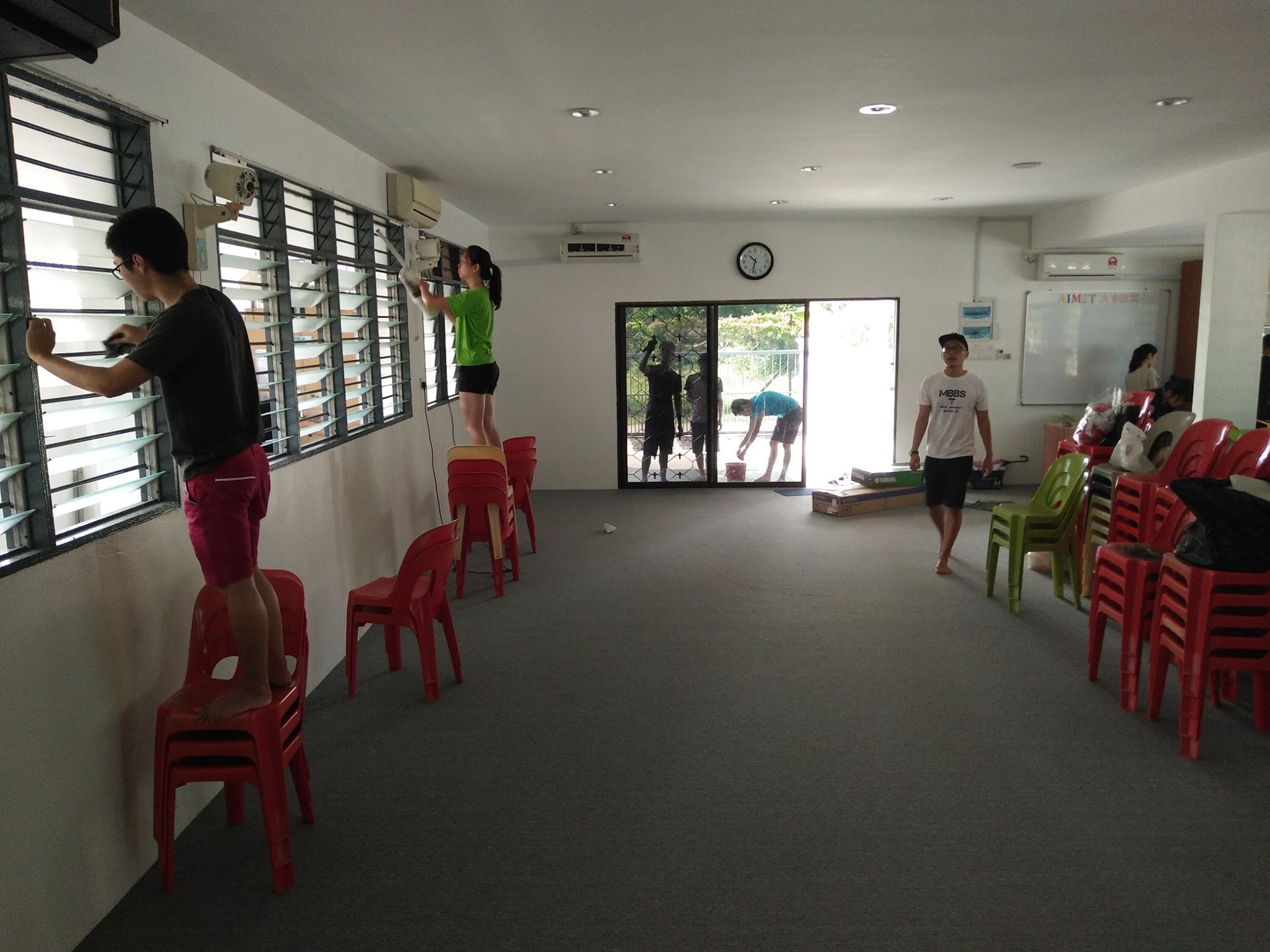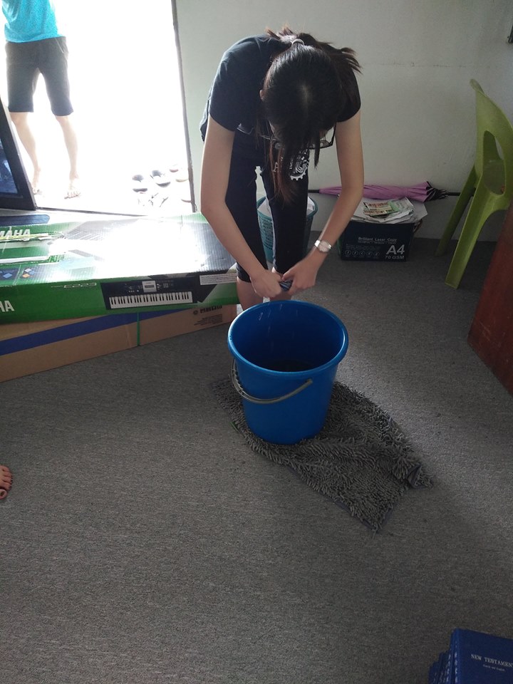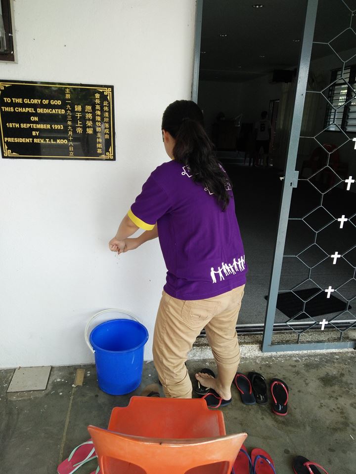 在敬拜赞美、短短的福音单张培训后,我们就开始我们的大扫除活动了!我把不同的小组组别安排来打扫不同的地方。 当中有窗口、门槛、厕所、台上, 走廊、图书馆、储藏室等。当我们一边打扫一遍听着播放着的敬拜赞美歌曲, 我发现原来布道所不只是一个建筑物而是我们的家。这是在主里所建立起的家。 里面有爱、有温暖、有欢笑声、有主里的家人, 所以我们更应该照顾好布道所(教会)的整洁, 当作我们自己的家一样。